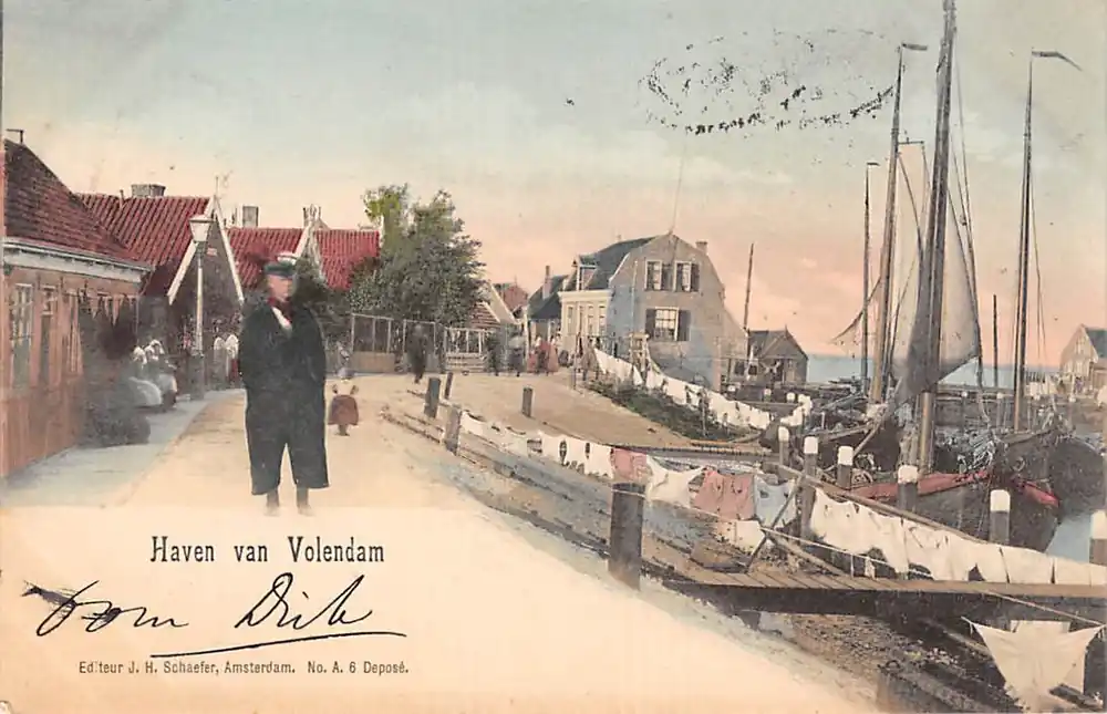 Wyprzedaż Haven van Volendam 1901 Vissers schepen Klederdracht Zuiderzee Vintage HC53579