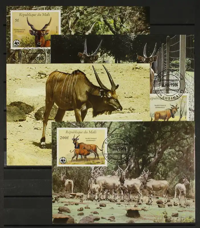 Mali 1986, Michel 1078-1081, Natuurbescherming (WNF): Antilopen, complete serie op 4 Maximumkaarten