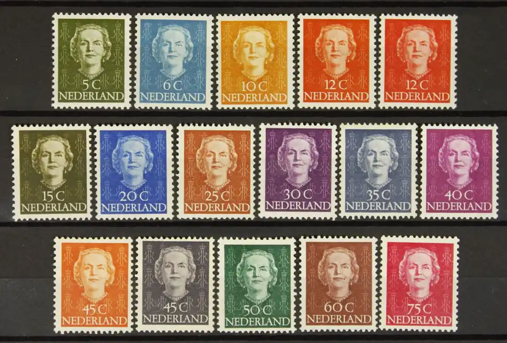 Nederland 1949, NVPH 518-533, Koningin Juliana “En face”, (klein formaat), complete serie, ongebruikt (plakkerspoor) / MH