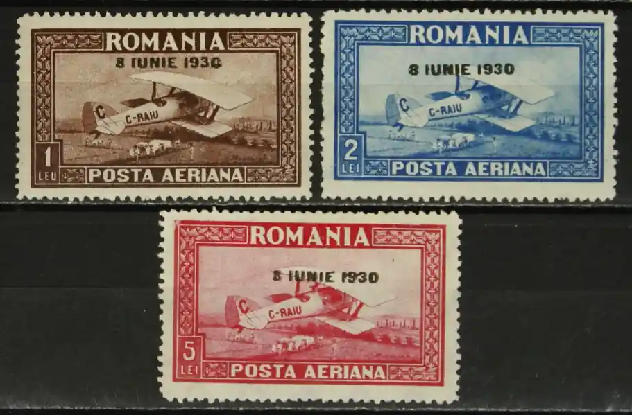Roemenie 1930, Michel 372-374 y, Kroning Koning Karl II, Luchtpostzegels met opdruk, complete ongebruikte serie, plakkerspoor / MH