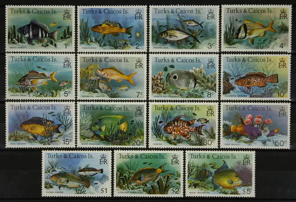 Turks & Caicos Eilenden 1978, Michel 405-419 I, Vissen, complete postfrisse serie / MNH
