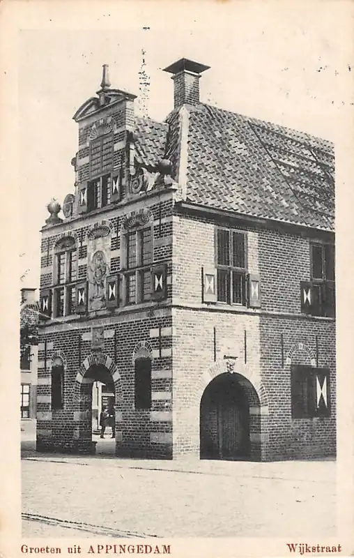 Uitgaver Wed. N.L. Nieuwenhuis. Gelopen ansichtkaart met postzegel en treinstempel stempel Delfzijl en Groningen 1920.