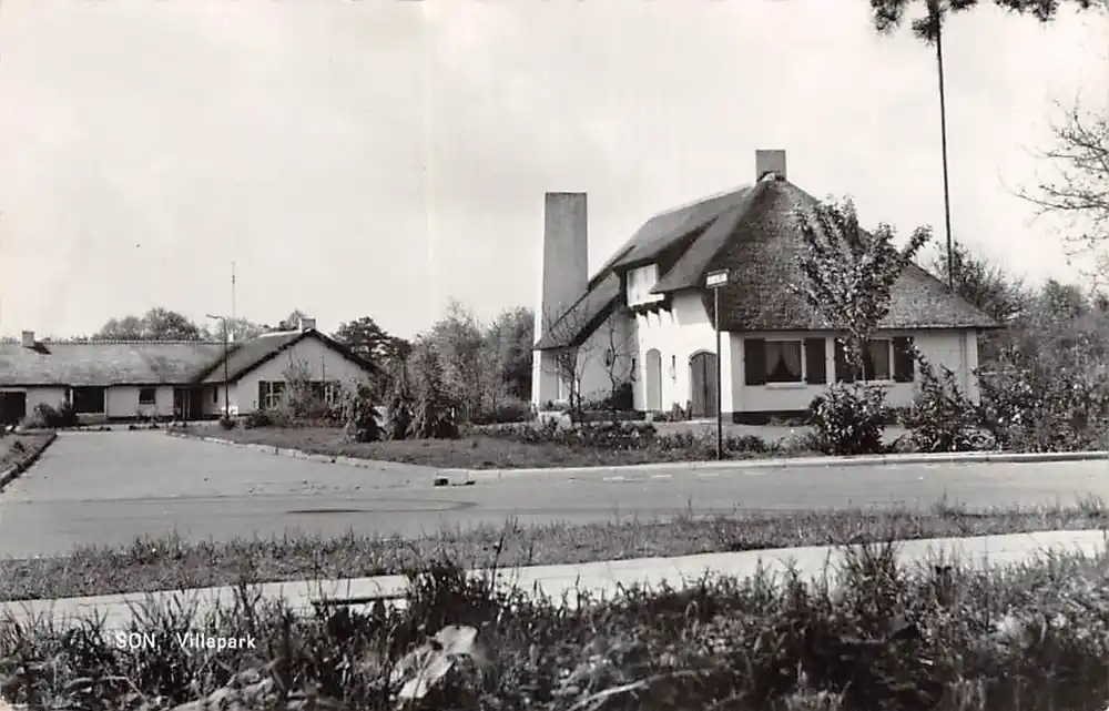 Uitg. Fa. v. Boxtel, Son. BELL. Noord-Brabant. 8620. 165. Ongelopen ansichtkaart van de vertegenwoordiger van de ansichtkaartenuitgeverij met zijn aantekeningen i.v.m. een heruitgave van deze kaart uit 1965 in 1967.