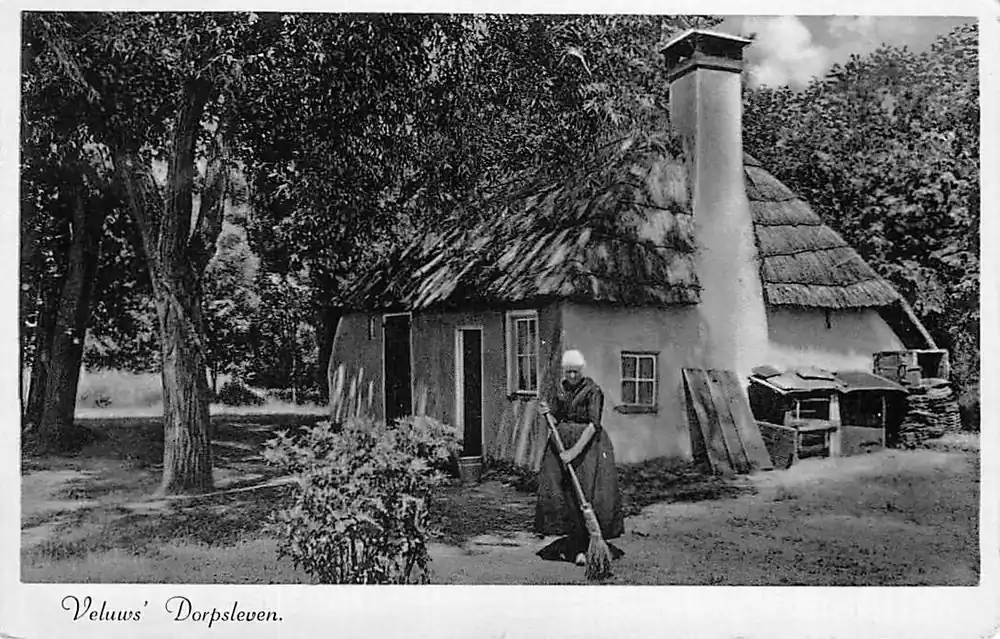 Wysoka jakość Veluws Dorpsleven Vrouw in klederdracht bij boerderij Harderwijk Vintage 1939 HC234