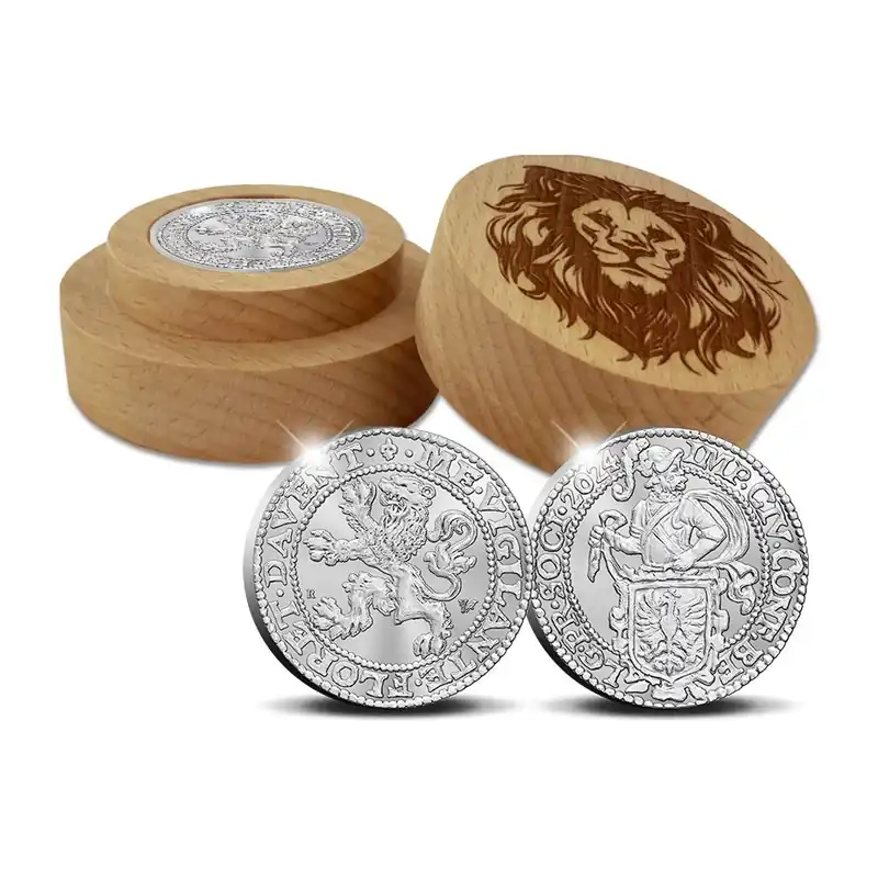 De nieuwe Leeuwendaalder is gearriveerd! Er is nog altijd veel aandacht en interesse voor de munten die eeuwen geleden in ons land werden geslagen. En dat begrijpen we bij de Koninklijke Nederlandse Munt maar al te goed; deze munten hebben immers altijd een bijzonder verhaal te vertellen. En met een mooie herslag van een oude munt kiest u voor onberispelijke kwaliteit én een mooi verhaal. Wist u dat het voor Nederlandse koopmannen veel interessanter was om een buitenlandse schuld af te betalen in Leeuwendaalders? Dit was ten opzichte van de duurdere rijksdaalders een betere optie. Op deze manier werd de Leeuwendaalder een veelgebruikte munt voor de (zee)handel.Van daalder naar dollar Wist u dat de Leeuwendaalder de voorloper is van de huidige Amerikaanse dollar? Hollandse kolonisten namen de munt mee naar New Amsterdam (later New York) en gebruikten deze daar volop.Het woord ‘'daalder’' werd in het Engels vertaald naar “dollar”. De grootste valuta ter wereld kent haar oorsprong in een Nederlandse munt!De Leeuwendaalder werd in Nederland vanaf 1575 geslagen enuitgegeven door zes van de zeven Nederlandse provincies en enkele grote steden. Een van deze steden is Deventer. De Leeuwendaalder 2024 Zilver 1 Ounce is een herslag van de originele munt uit Deventer, welke een bijzondere verrassing in petto heeft!Leeuwendaalder uit DeventerDeventer is een van de steden waar de Leeuwendaalder werd geslagen en uitgegeven. Echter was de stad betrekkelijk laat met het slaan van deze munt, omdat er sprake was van strenge controle. In 1640 kreeg de muntmeester van Deventer, Johan Wyntgens, alsnog de opdracht om Leeuwendaalders te gaan slaan, omdat de aanmunting van zilver toch winstgevend bleek.Omdat er bij Deventer sprake is van een stedelijke Leeuwendaalder, is het wapenschild van Holland vervangen voor een stadsadelaar, het boegbeeld van Deventer. Ook is er sprake van een andere tekst op de keerzijde: ‘ME VIGILANTE FLORET DAVENT.’ Dit betekent: ‘Omdat ik waak, bloeit Deventer’. De tekst maakt deze stedelijke Leeuwendaalder extra uniek.Munthouder van beukenhout Zoals altijd wordt de Leeuwendaalder geleverd in een bijzondere munthouder. Speciaal voor de Leeuwendaalder 2024 Zilver 1 Ounce is gekozen voor een beukenhouten verpakking met een ingegraveerde leeuw op de deksel. Deze leeuw is een verwijzing naar de Leeuwendaalder, maar natuurlijk ook naar Nederland. Beuken is een sterke houtsoort, wat ook weer een goede vergelijking is met de kracht van een leeuw en het belang van de munt in de overzeese handel. Met de Leeuwendaalder 2024 Zilver 1 Ounce kiest u niet alleen voor een unieke munt, maar ook voor een zeer bijzondere munthouder.