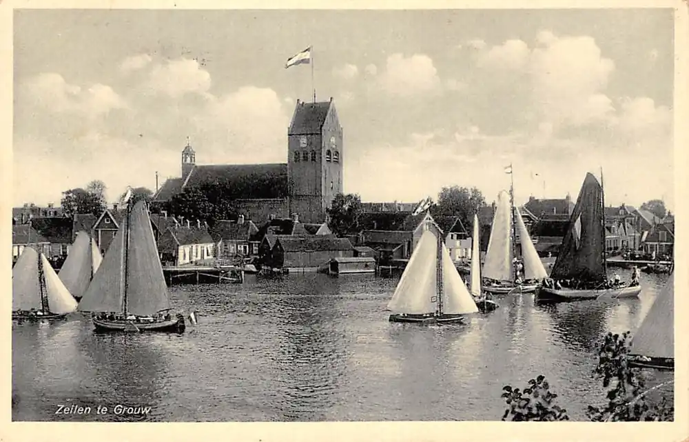 35Ri. Uitg. Fa. van der Spoel & Co. Grouw. Gelopen ansichtkaart met postzegel en stempel 1935.