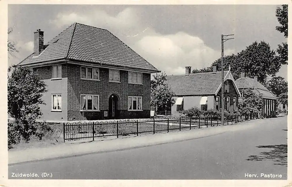Uitgave H. Zandman, Zuidwolde Dr. Gelopen ansichtkaart met postzegel en stempel 1946. Knikje\\u00a0 rechts naast het dak.