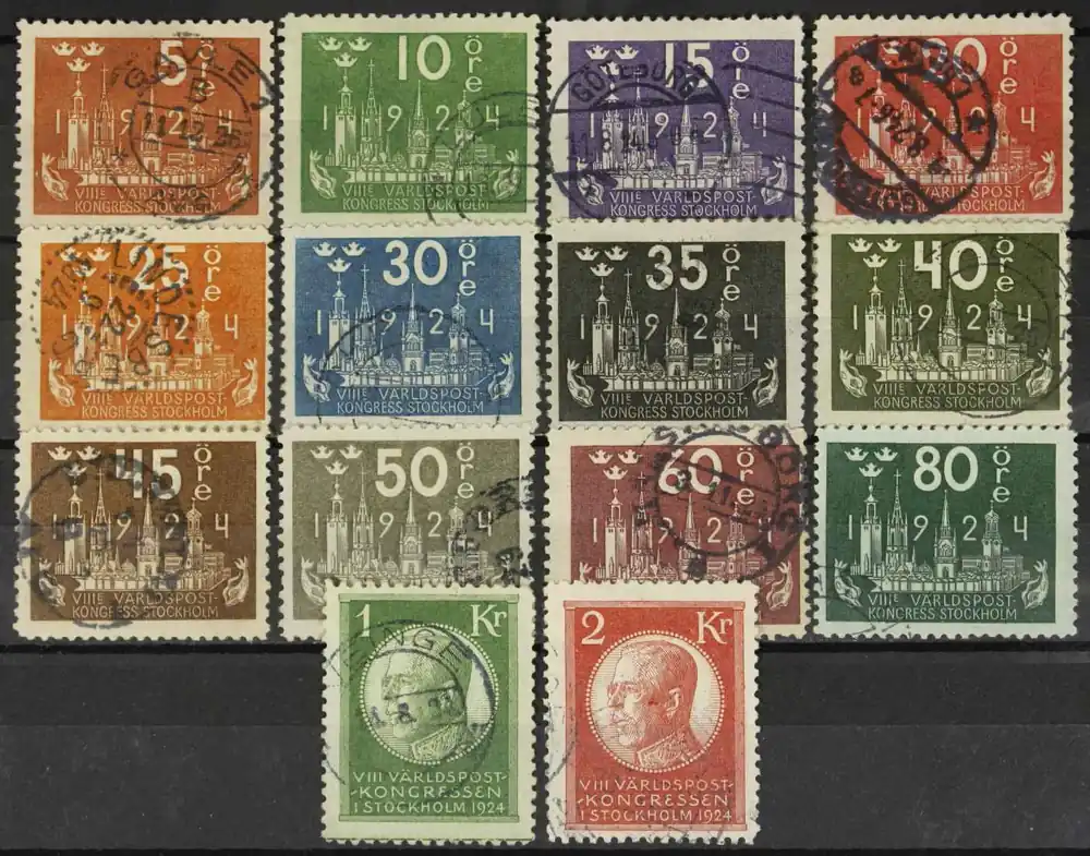 Zweden 1924, Michel 144-157, Wereldpostcongres, shortset, gestempeld/usedGeen Michel 158.