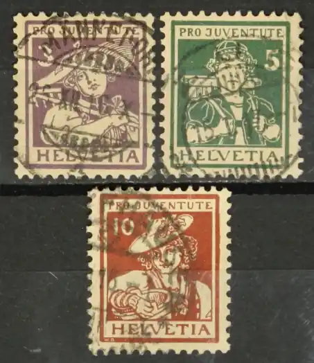Zwitserland 1916, Michel 130-132, Pro Juventute: Klederdrachten (II), complete serie, gestempeld / used