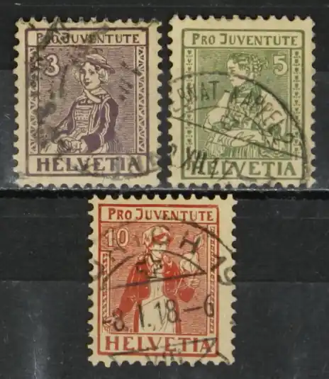 Zwitserland 1917, Michel 133-135, Pro Juventute: Klederdrachten (III), complete serie, gestempeld / used