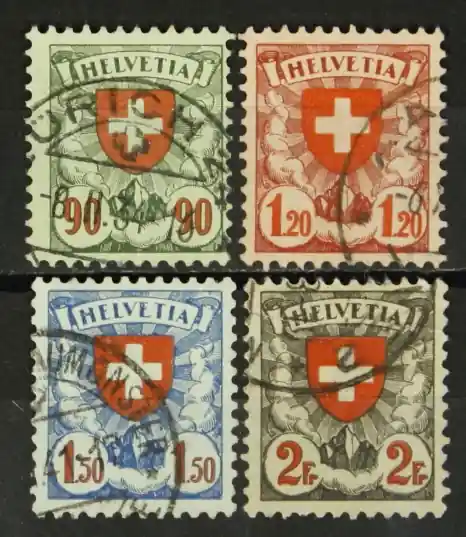 Zwitserland 1933/34, Michel 194-197 Z, Wapens, faserpapier/geribbeld, complete serie, gestempeld / used