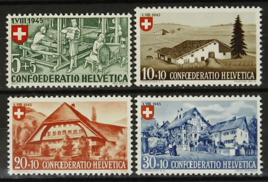 Zwitserland 1945, Michel 460-463, “Pro Patria”: Beroepen / Landhuizen (I), complete serie, postfris / MNH