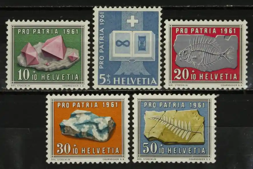 Zwitserland 1961, Michel 731-735, Pro Patria: Mineralen en fossielen (IV), complete serie, postfris / MNH