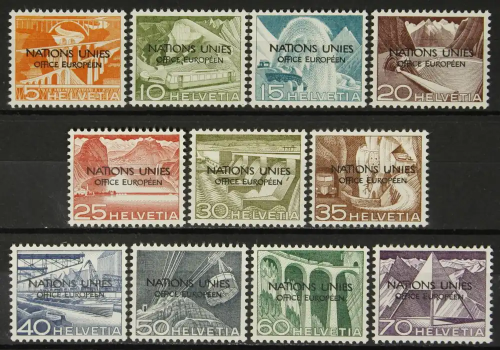 Zwitserland 1950, Michel 1-11, Nations Unies Office European (ONU), complete serie, postfris / MNH