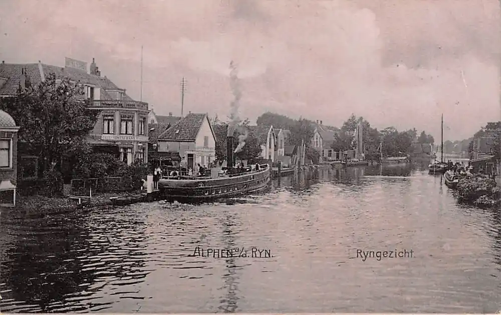 Zwrot pieniędzy Alphen aan den Rijn Ryngezicht met binnenvaart schepen 1906 HC49380