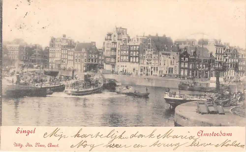 Uitg. Jos. Nuss, Amsterdam. Mooie gelopen ansichtkaart met postzegel en drie stempels 1902.