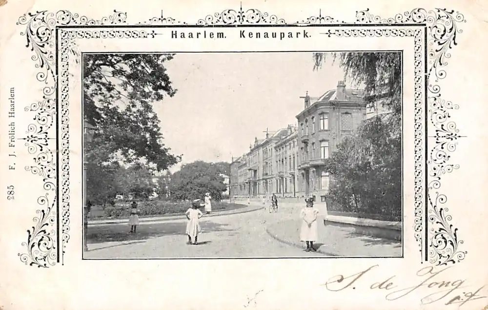 285. F.J. Frolich, Haarlem. Gelopen ansichtkaart met postzegel en stempels 1905. Hoekjes miniem gesleten. Kleine knikjes in bovenhoekjes.