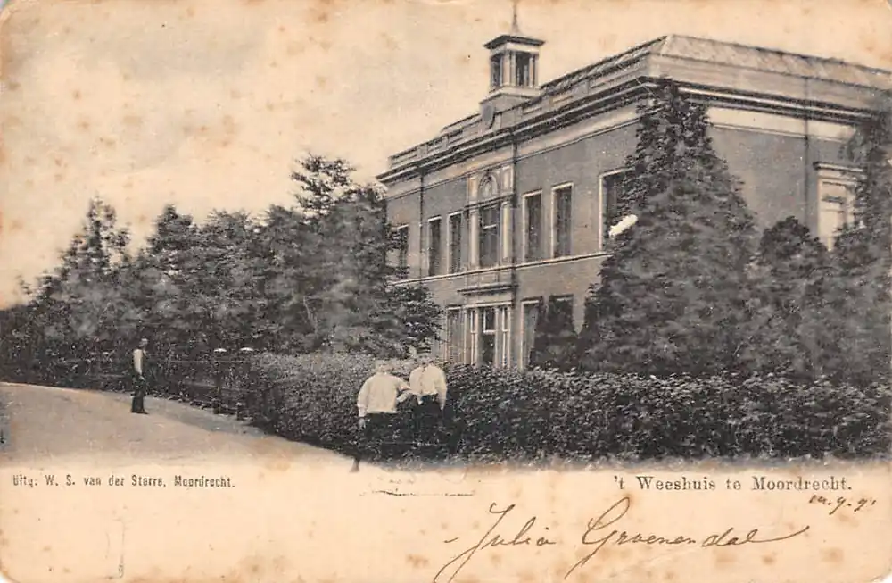 Uitgave W.S. van der Sterre, Moordrecht. gelopen ansichtkaart met postzegel en stempels begin 1900. Hoekjes en randjes iets gesleten en roestplekjes. Zie de scans.